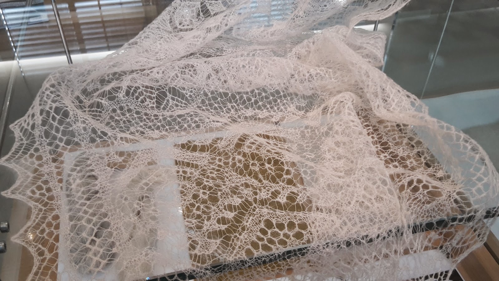 Shetland lace ring shawl – so fine you can thread it through a wedding ring. I